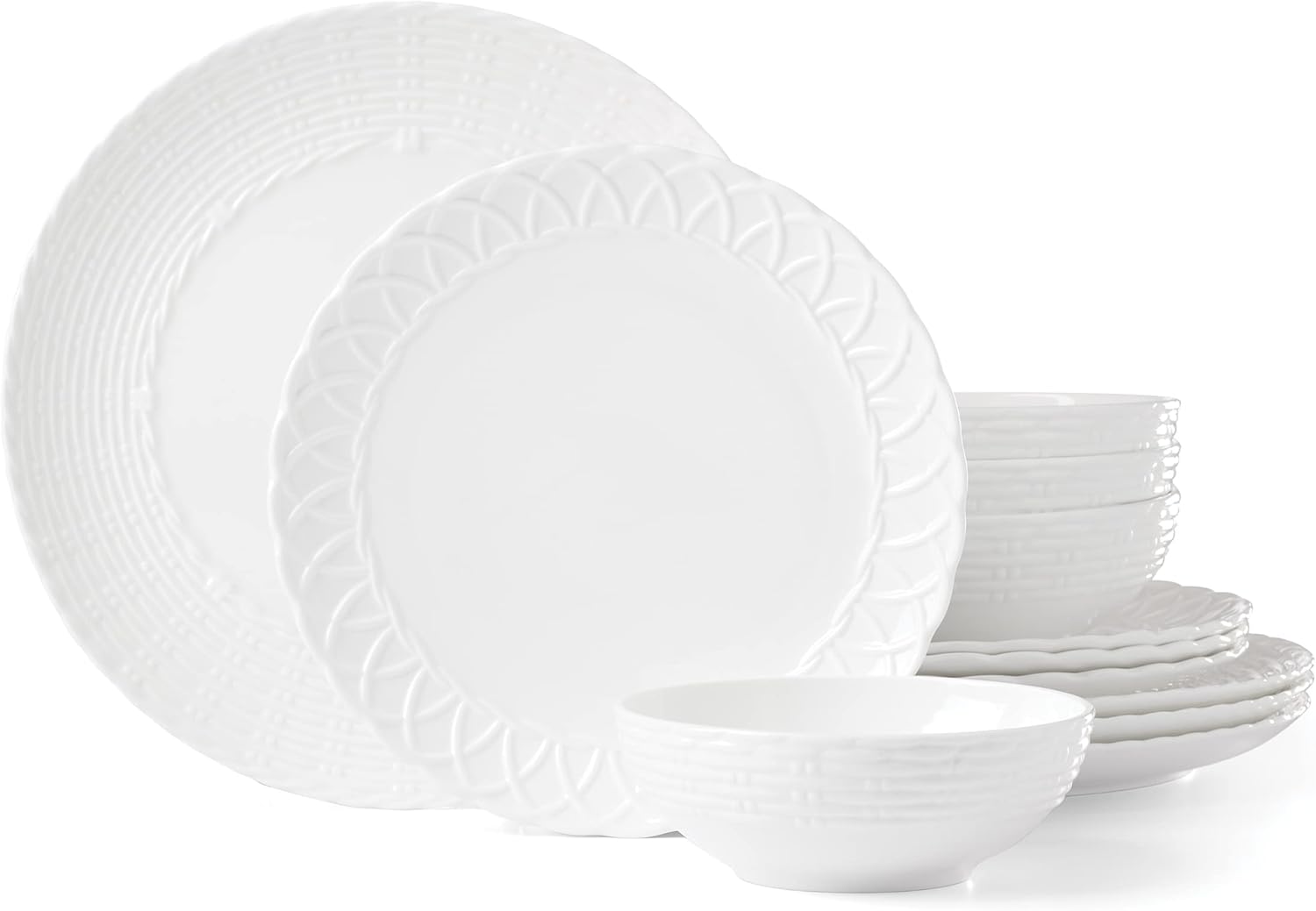 Includes (4) dinner plates, (4) accent plates, and (4) all-purpose bowls